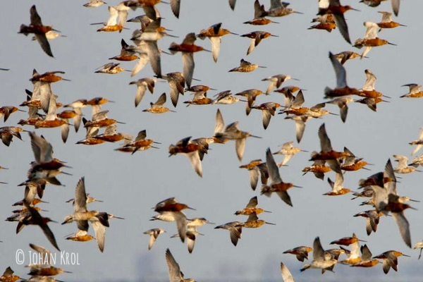 Onderweg doen we zeer uiteenlopende gebieden aan: uiteraard de duinen met kiekendieven, rietvogels en Tapuiten, de polder met de voor Nederlandse begrippen ongekende aantallen broedende weidevogels als Grutto, Tureluur en Scholekster, maar ook het strand met broedende plevieren (Strandplevier!), Kluten en sterns (Noordse Stern en Dwergstern!). Als kers op de taart gaan we bij hoogwatervluchtplaatsen bij opkomend tij steltlopers kijken. Mei is een perfecte maand voor mooie aantallen Rosse Grutto’s in broedkleed, maar nog veel meer steltlopersoorten zijn te verwachten (zoals o.a. Kanoet, Bonte Strandloper, (Regen)Wulp, Zwarte Ruiter, Zilverplevier).